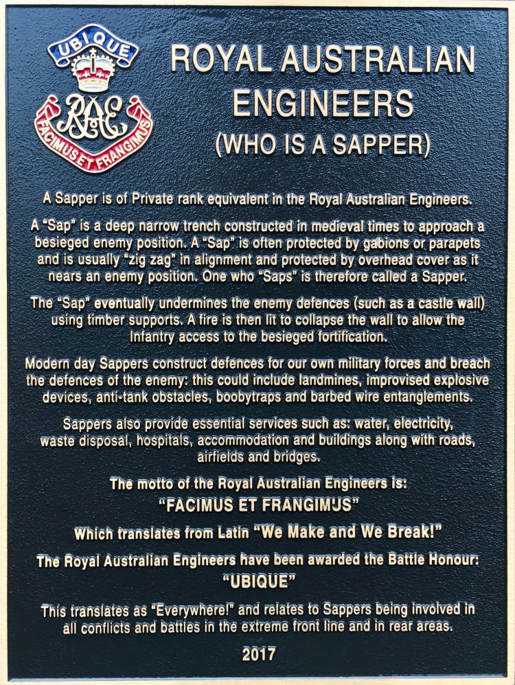 “Facimus et Frangimus” – We make and we break – This is the original motto of Australian Engineers adopted at Federation and appearing on the engineer hat badge up until 1947. It now only appears on the Corps Cipher.