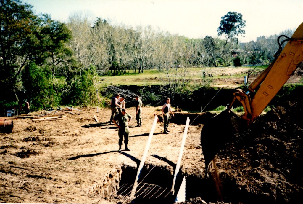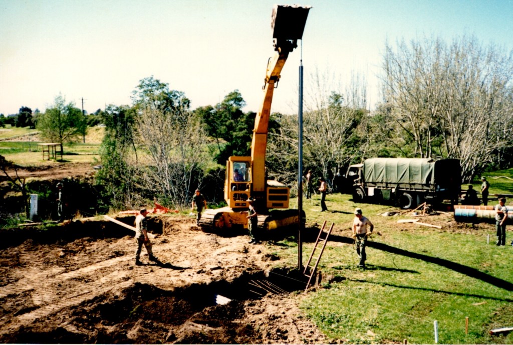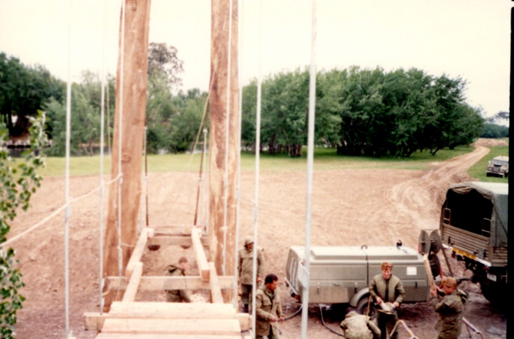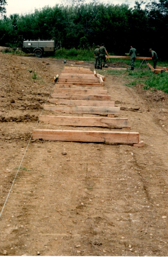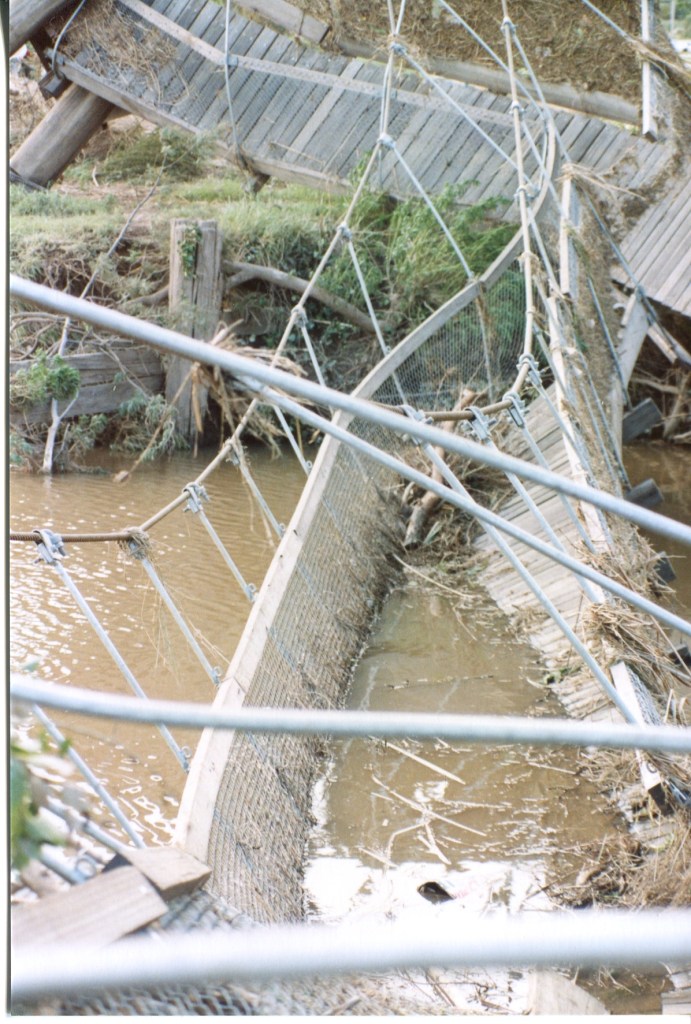 That Backwater Suspension Bridge was originally constructed by 8 Field Squadron, 7 Field Engineer Regiment in 1989. After major floods in the area in 1990 the bridge needed to be reconstructed, this time the job was carried out by 38 Field Squadron in 1991.