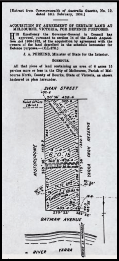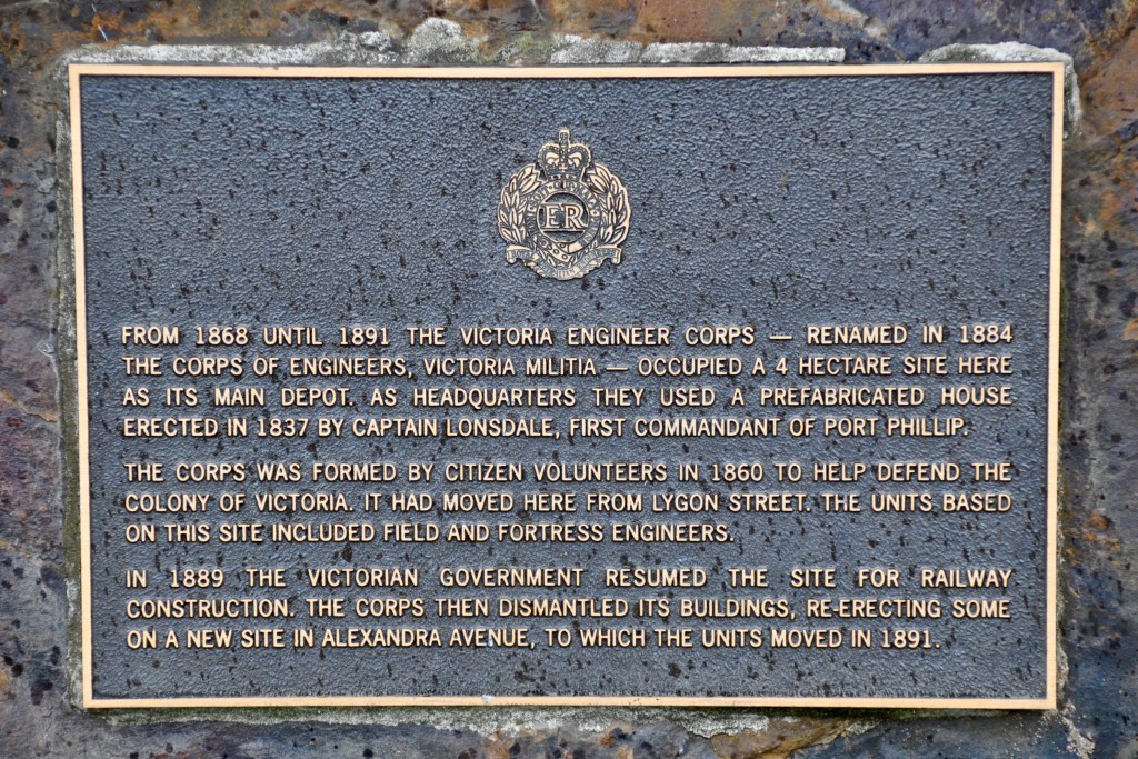 1868 the Victorian Volunteer Engineer Corps HQ moved to a 4 ha site on the South side of Wellington Parade South.