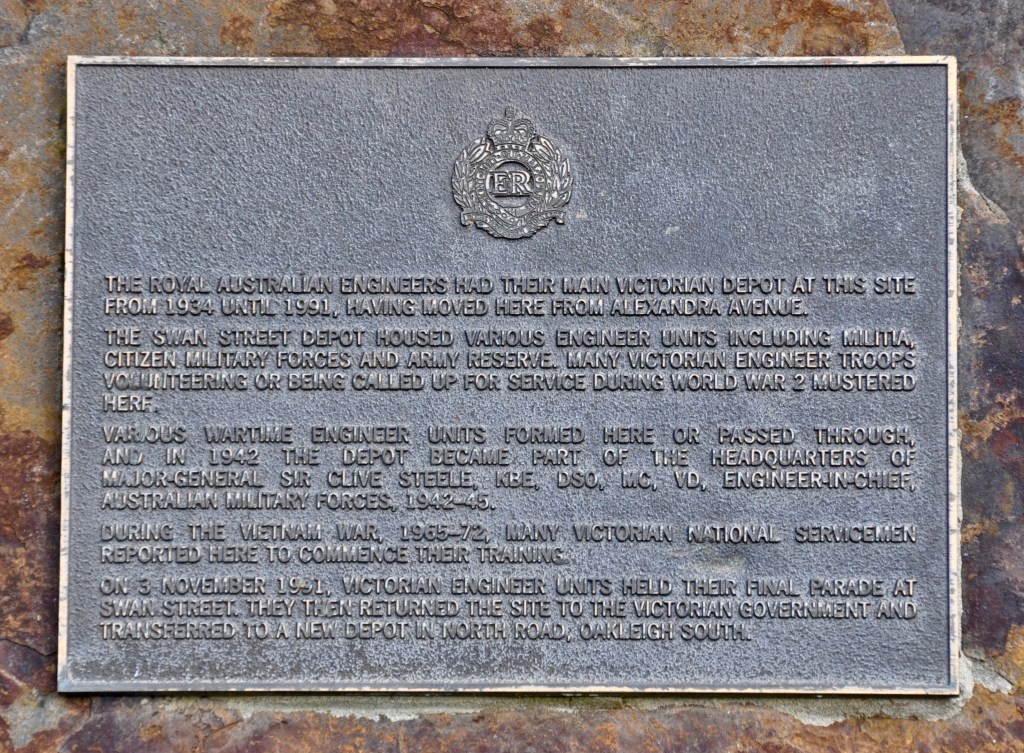 The Swan Street Depot housed various Engineer units including Militia, Citizen Military Forces and Army Reserve.