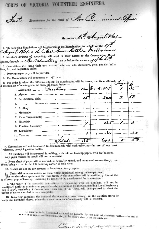 In 1885 a Victorian Government return dated 30 June 1885 listed 10 Regular soldiers (the Permanent Section) seventy Militia men in the Torpedo Corps and 101 men in the Engineer Corps