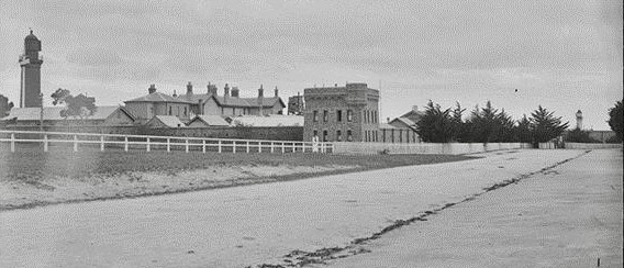 The building of this battery required the construction of new lighthouses. In 1861, contracts were let for the lighthouses to replace the timber-framed leading light built in 1854, and the badly decaying sandstone upper light. Both new lighthouses were built in dressed basalt and by February 1863 were operational. The timber light was subsequently re-erected at Point Lonsdale as the first Point Lonsdale Lighthouse. In 1862–63, lighthouse keepers’ quarters were erected at the Bluff for both Queenscliff lighthouses. The upper quarters still survive within the Fort. Between 1864 and 1879, the rate of military construction at Queenscliff declined. In 1870, as the last detachment of British troops left Victoria, the debate on the Colony’s defences remained unresolved and the future of the Queenscliff battery was by no means certain.