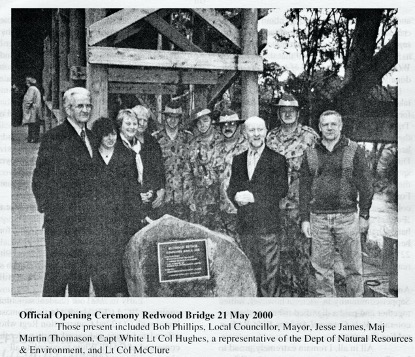 At the opening on the 21 May 2000, CO 4CER LTCOL Don Hughes, said that, “the Army is always looking for worthwhile training projects so that our young soldiers and officers can gain valuable hands-on experience. We were also happy to be able to ‘build bridges’ with the local community of Warburton”