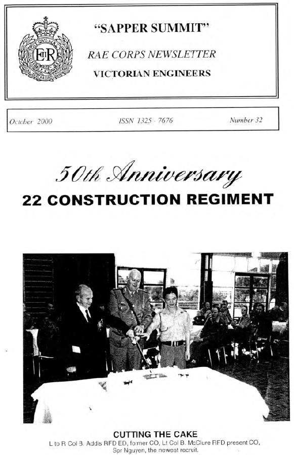 Sapper Summit is the journal of the Royal Australian Engineers Association of Victoria. It is published twice a year and from time to time, special supplements are also published. In addition to promoting events relevant to members and to 22 Engineer Regiment, Sapper Summit also features articles of historical interest as well as promoting welfare issues that impact on current and retired soldiers.